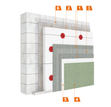 Для создания декоративно-защитного слоя применяется силикатно-силиконовая декоративная штукатурка weber.pas extraClean с эффектом самоочищения. Штукатурка может быть нескольких видов структур: зернистая («шуба») и бороздчатая («короед») с размерами зерен 1.5/ 2.0 мм. Цвет - белый/ колеруется в соответствии с цветовой палитрой Weber Color Spectrum, RAL, NCS и другими системами. Коэффициент светоотражения должен быть не менее 25-30%.