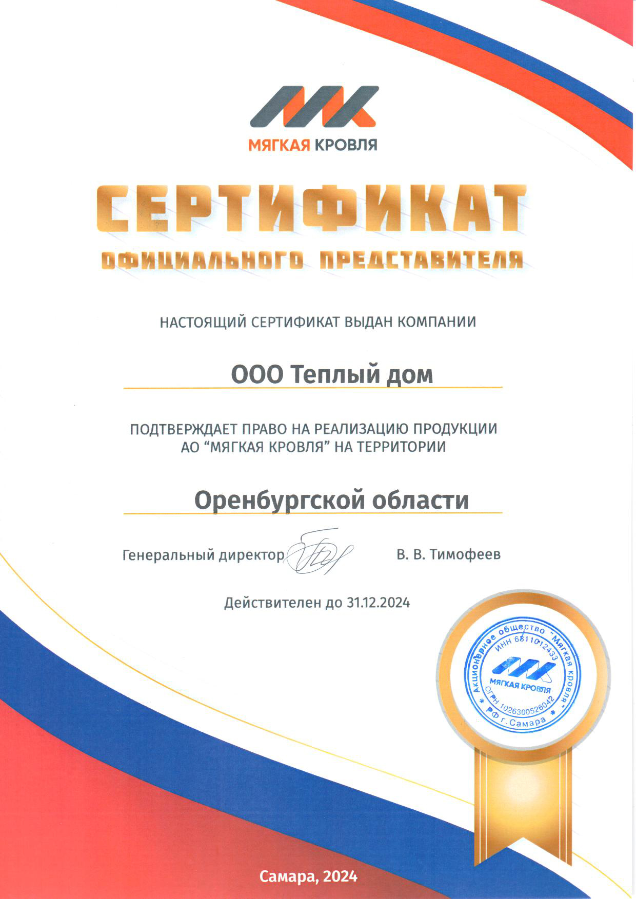 Компания «Теплый дом» поставляет продукцию прошедшую сертификацию